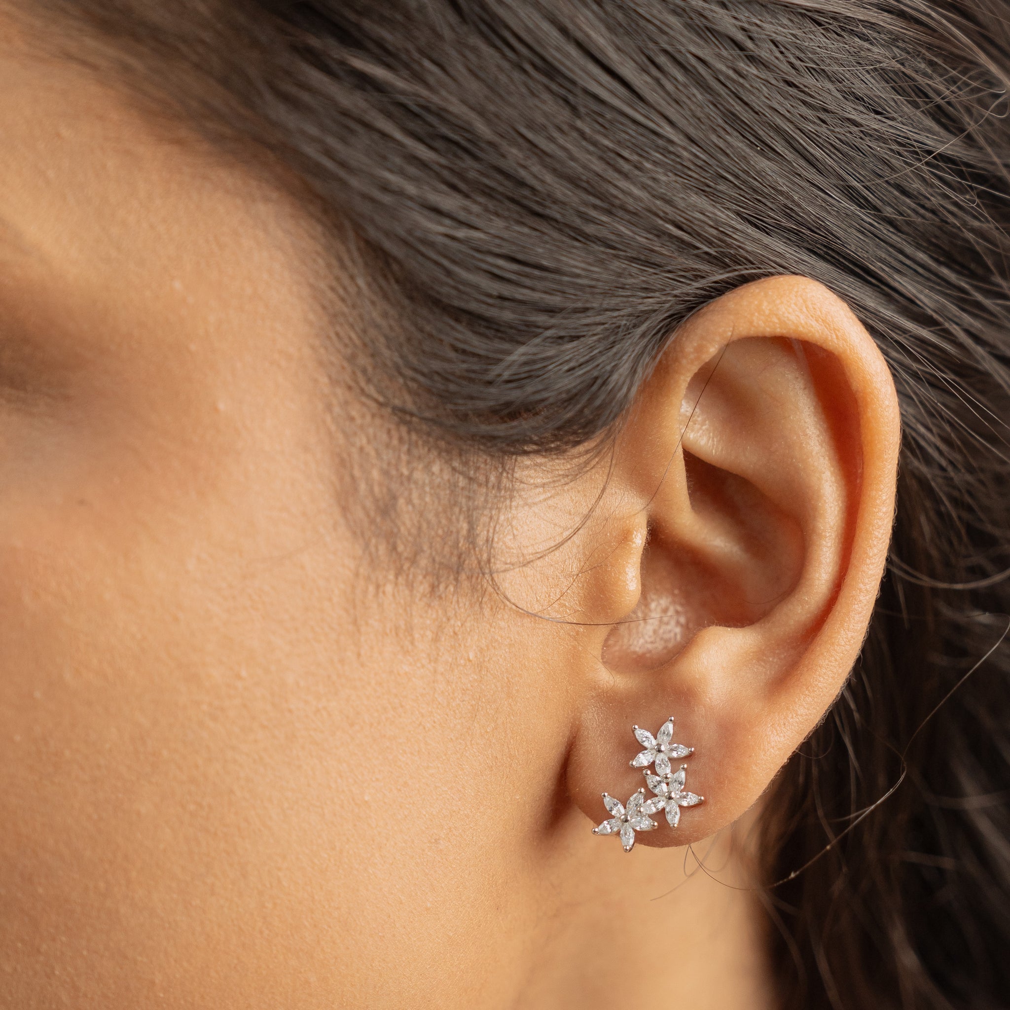 3 Flower Diamond Earrings